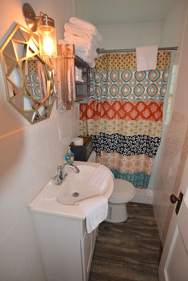 This private end cottage with extra south and west facing windows is always sunny. With a bit of mid-century modern vibe, the cottage features a new queen sofa sleeper, a twin sleeper, Ikea furniture, and those iconic MCM sconces. The gleaming wood floor was professionally refinished in 2020. Enjoy the comfy chairs on the screened in front porch and the picnic table with umbrella. A window A/C unit in the living room and ceiling fans in living room and bedroom keep this airy cottage cool. The bathroom and kitchen are updated with tile floors (subway tile in the shower) and fresh paint.