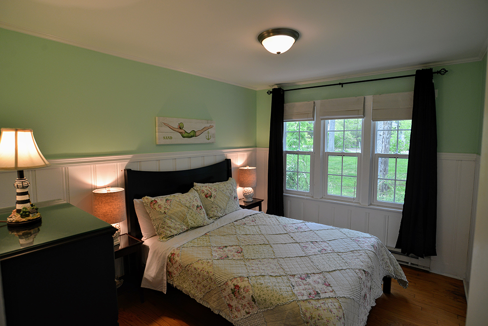 This cute cottage has a queen bed, new queen sleeper, wood floors, screened in front porch with Adirondack chairs, window A/C unit in the living room, ceiling fan in living room, flat screen TV, cable, DVD, dishwasher, microwave, and coffee maker. Fresh paint and new queen sleeper in 2015. Flat screen TV with cable in master also.